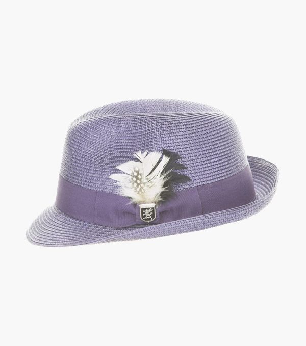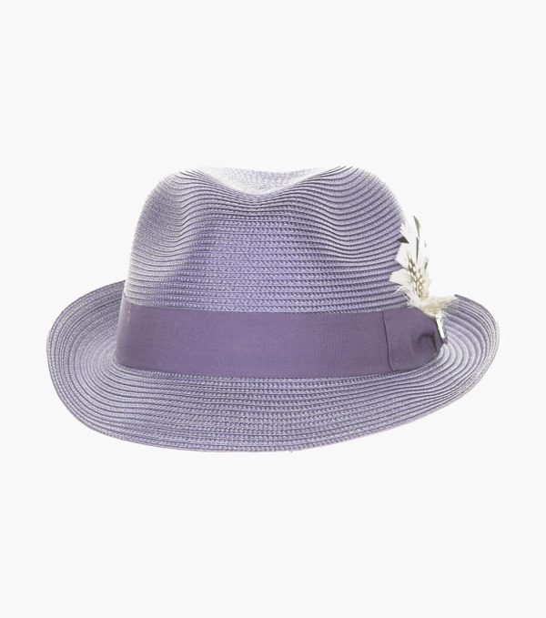 Effortless elegance is the best way to describe this poly braid fedora. The tone on tone grosgrain band is offset by a subtle feather and side pin detail, making it a hat that is understated but never overlooked.