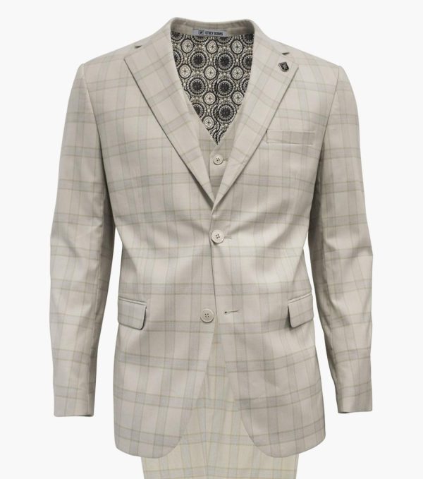 The Coogan features a modern single-breasted jacket and vest in an elegant tan tone with a subtle glen plaid pattern. Classic yet contemporary, this suit is the perfect choice for work, wedding, or date night.