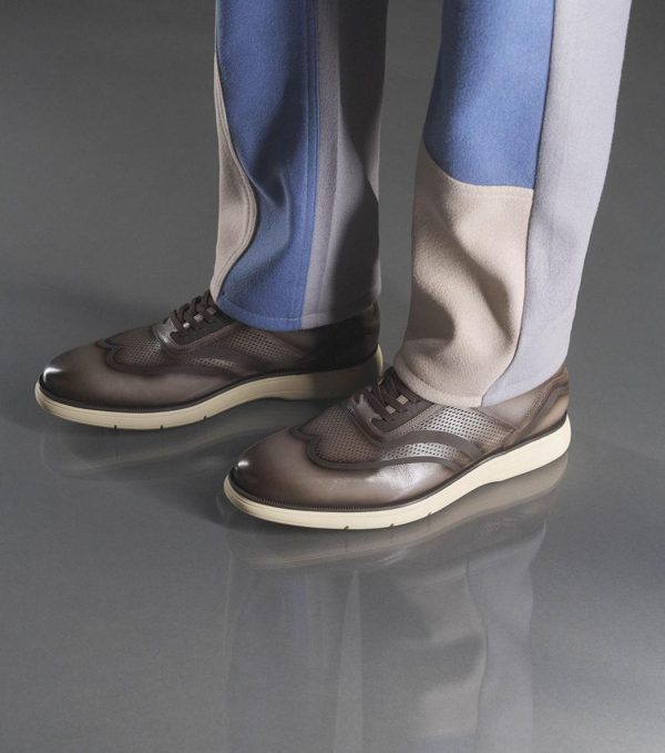The Stacy Adams Edgewood Wingtip Elastic Lace Up features a casual leather upper with rich burnishing and micro-perfing details The hybrid look is complemented by an athletic inspired sole and elastic lace for easy on/off convenience