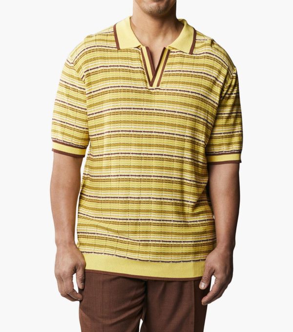 This colorful polo shirt features a modern fit and has offset stripes highlighted by a two-tone, open spread collar.