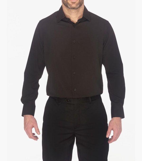 Comfort and style combine in this solid color dress shirt It features a modern fit, French placket, comfortable stretch fabric, and has the versatility to be worn with a suit or jeans
